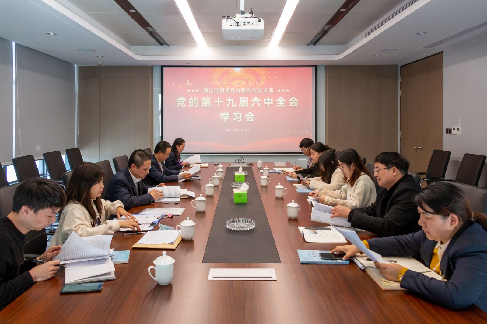 12月1日,在江河建設杭州總部,浙江江河建設有限公司黨總支召開會議,學習黨的十九屆六中全會精神。公司黨總支書記、董事長袁偉忠強調:“公司各級黨組織以及各黨員要提高政治站位,堅持原原本本學,融會貫通學,聯系實際學,把學習貫徹六中全會精神,與學習貫徹習近平總書記“七一”重要講話精神結合起來,與黨史學習教育結合起來,要把全會精神納入黨支部“三會一課”和黨員教育培訓內容,大力營造全公司學習貫徹全會精神的濃厚氛圍,不斷推動學習往深里走、往心里走、往實里走,切實將全體黨員干部的思想統一到全會精神上來,進一步凝聚人心、增強斗志,沖刺四季度、決勝全年度,以扎實業績推動公司實現高質量發展。”