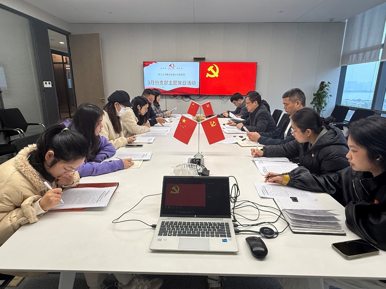 3月18日,公司黨總支在杭州總部開展3月份“支部主題黨日”活動,傳達學習《習近平關于樹立和踐行正確政績觀論述摘編》有關章節,學習全國“兩會”精神,同時學習了省、市、區新春第一會及全區建筑業大會精神,傳達上級黨委樹立和踐行正確政績觀學習教育有關工作要求。公司黨總支書記、董事長袁偉忠,黨建指導員沈波等領導出席,公司黨總支副書記何金標主持并講話,全體黨員、流動黨員、入黨積極分子參加會議,部分非黨員職工群眾列席會議。