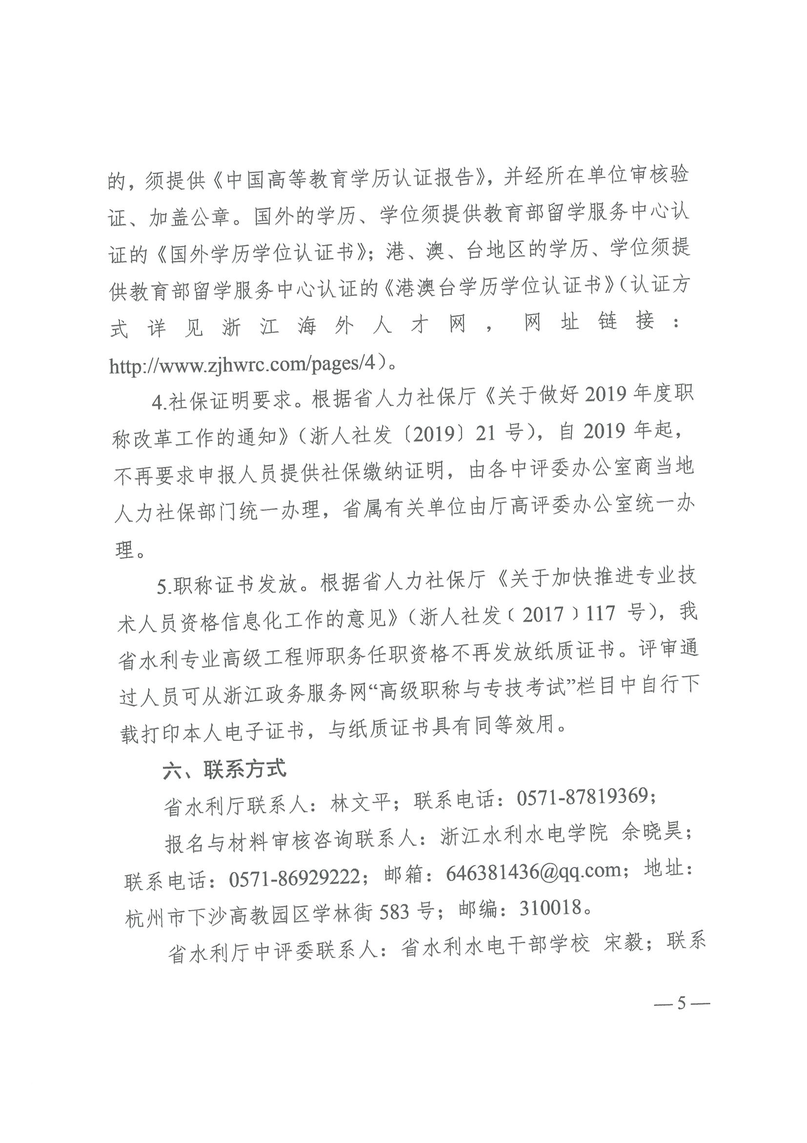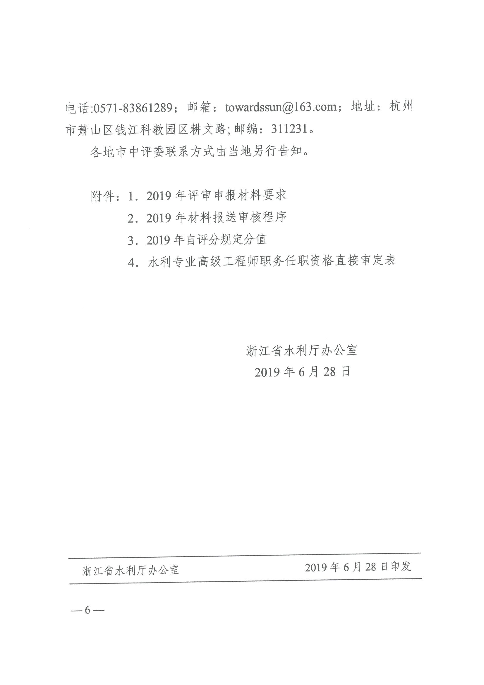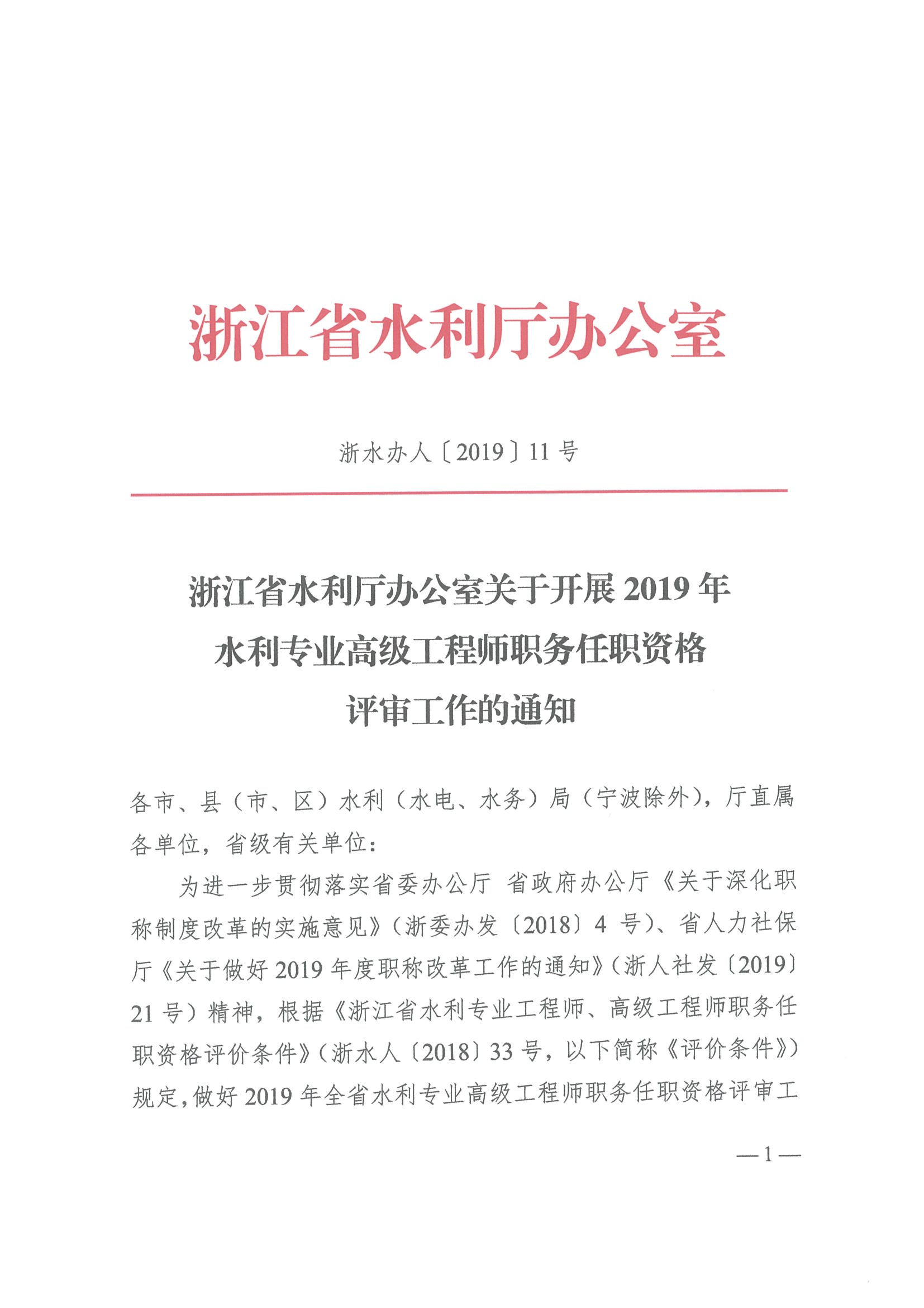 浙江省水利廳辦公室關于開展2019年水利專業高級工程師職務任職資格評審工作的通知