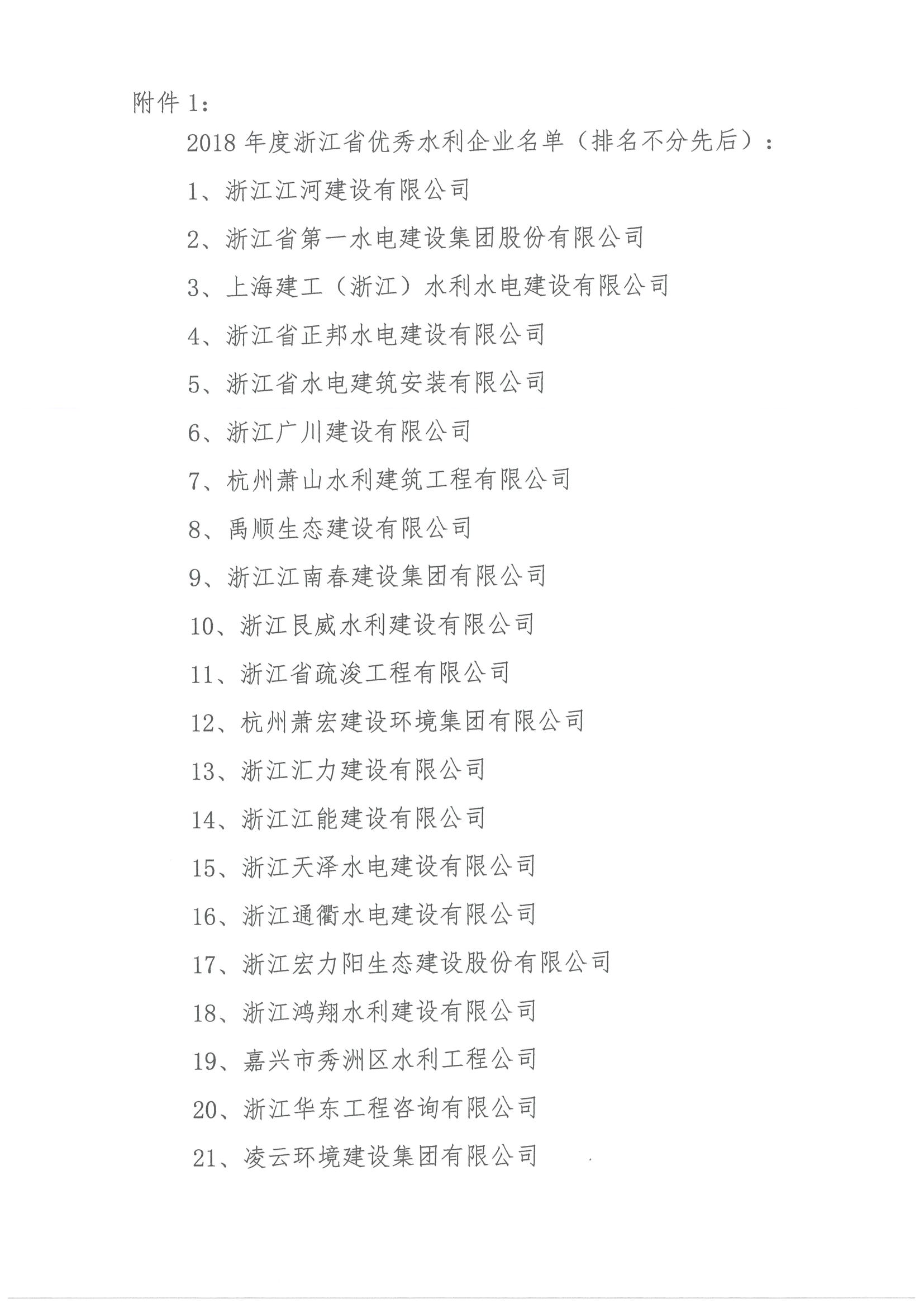 關于表彰2018年度浙江省優秀水利企業、浙江省優秀水利企業家的通知