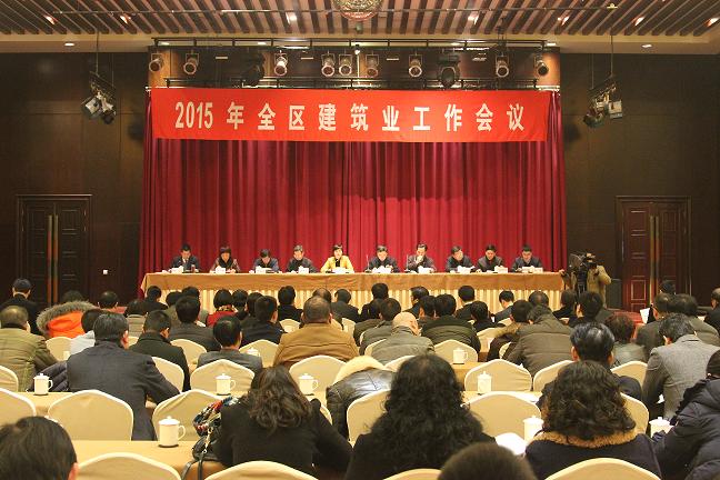 會議由區委副書記陳堅主持。副區長袁建作工作報告。報告指出,過去一年,面對復雜多變的宏觀經濟形勢,全區廣大建筑企業堅持以“穩中求進、進中求好”為工作基調,切實加快轉型升級步伐,積極拓展市場規模,整體實力和質量效益得到了同步提升。全年實現建筑業總產值1367億元,同比增長6.6%;新承接業務1255億元,增長11.4%;實現利稅89億元,增長4.7%。全年新升一級企業1家、二級3家;共創5億元產值以上省市級區域市場25個,承接造價億元以上大型土建項目155個、裝飾等專業項目39個;創省市級以上優質工程獎203項,其中全國性30項。全年共納稅7.45億元,同比增長9.2%,其中上繳地稅6.35億元,同比增長13.4%;新增返鄉投資項目8只,捐助本地公益事業資金逾1900萬元。報告指出,當前我區建筑業發展進入了經濟增速平穩期、發展方式轉型期、風險困難凸顯期,當前及今后一段時期,既是我區建筑業發展的“陣痛期”,也是發展的“蓄力期”,務必要清醒認識,適應新常態,引領新常態。報告提出,今年的預期目標是:建筑業產值增長8%以上,新增二級以上企業2家,爭創國家級工程獎2項,企業發展質量持續提升,納稅和返鄉投資穩步增長,建筑施工百億元產值死亡率低于全省平均水平。重點抓好四方面工作,一是加強企業管理,提升發展基礎;二是搶抓發展機遇,深入拓展市場;三是嚴抓質安誠信,筑牢生存防線;四是強化企業服務,優化發展環境。