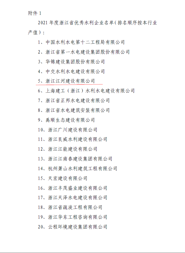 喜報|江河建設榮獲“2021年度浙江省優秀水利企業”