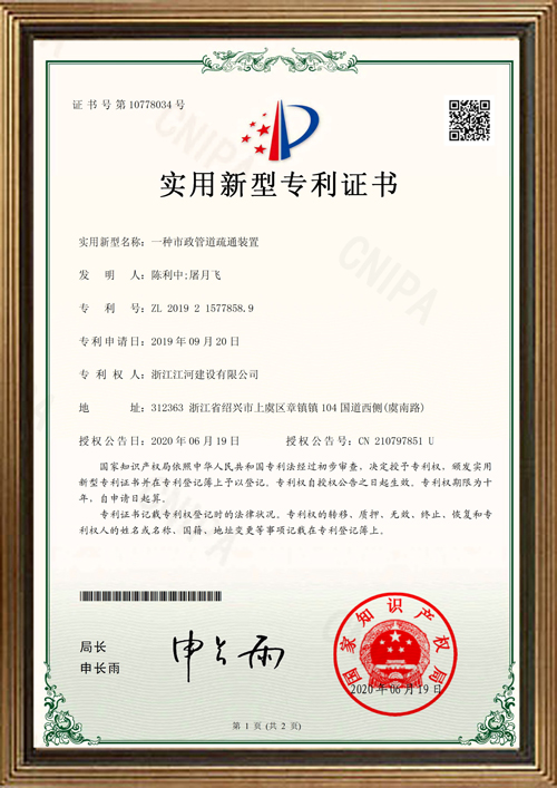 日前,公司榮獲國家知識產權局10項實用新型專利,其中涉及水利水電工程5項、市政公用工程5項。