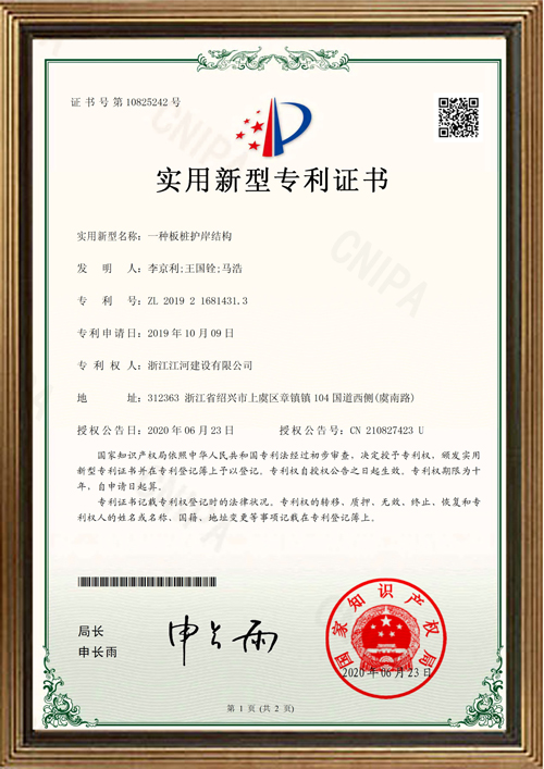 近年來,公司著力加大對科研技術的投入,積極開展技術創新工作,目前尚有多個發明專利和實用新型專利在國家知識產權局審核,另有兩項省級工法被省水利廳推薦到省住房和城鄉建設廳。