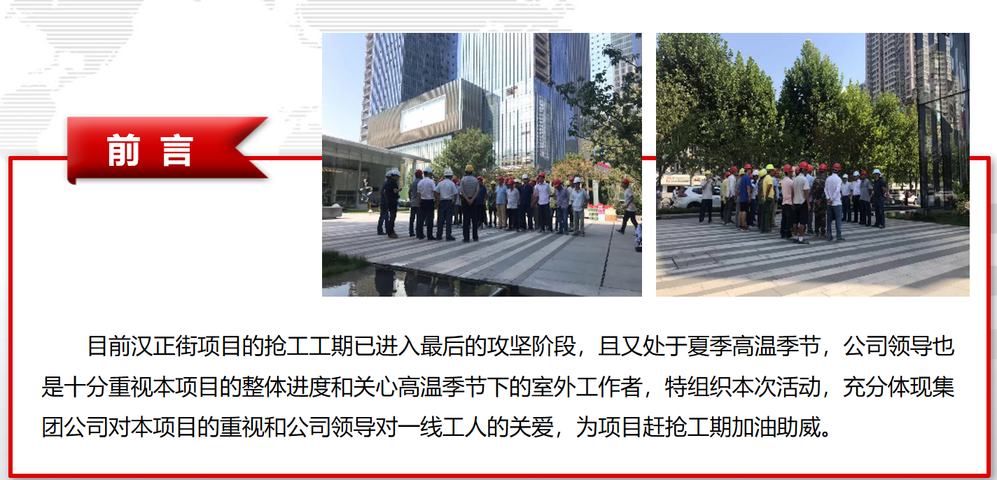 漢正街項(xiàng)目開(kāi)展夏季高溫?fù)尮の繂?wèn)活動(dòng)