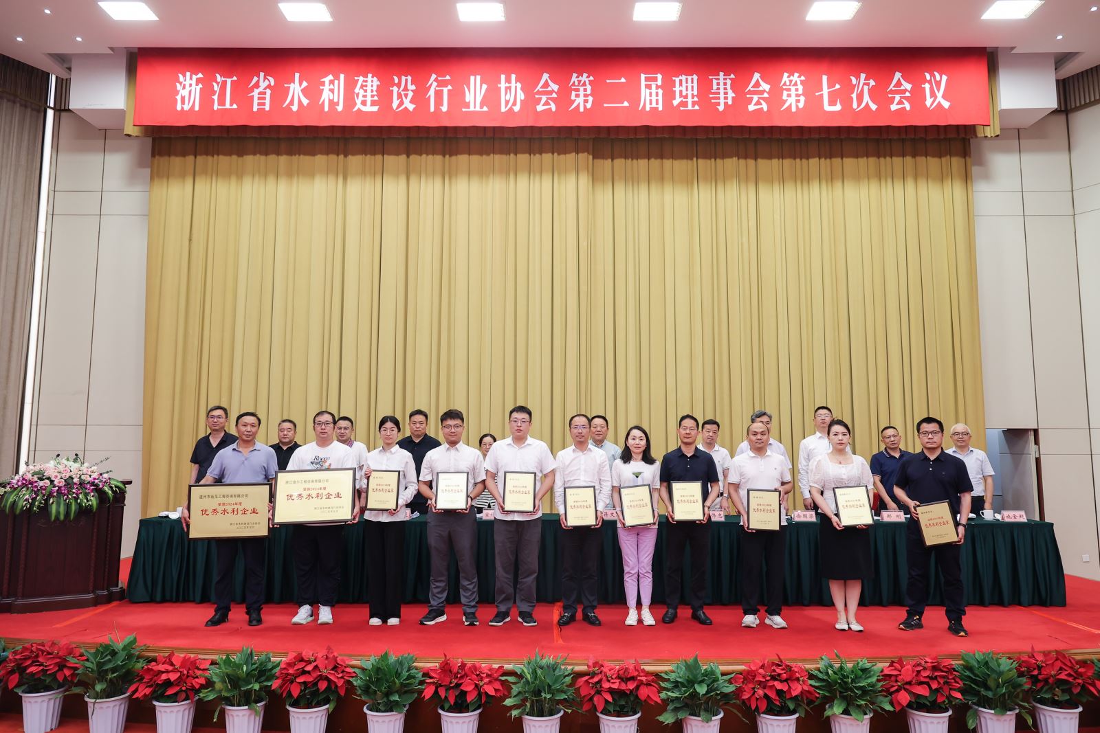 5月22日下午,浙江省水利建設行業協會召開第二屆理事會第七次會議,表彰2024年度優秀水利企業、優秀水利企業家、優秀水利建造師等,江河建設蟬聯優秀水利企業稱號,董事長袁偉忠再次榮獲優秀水利企業家稱號,李京利、呂劍棟、陳微波等榮獲優秀水利建造師稱號。