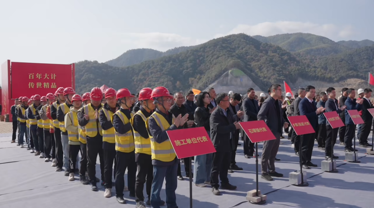 2025年12月10日,我司中標(biāo)的嵊州市三溪水庫工程舉行截流暨大壩主體工程開工儀式。標(biāo)志著這個(gè)省級(jí)“千項(xiàng)萬億”重大項(xiàng)目前期工作取得重大勝利,大壩主體正式進(jìn)入施工階段,紹興市副市長羅延發(fā)、省水利廳二級(jí)巡視員宣偉麗、嵊州市委書記裘建勇,市長潘超英、紹興市水利局局長等參加開工儀式,公司董事長袁偉忠也親臨現(xiàn)場。
